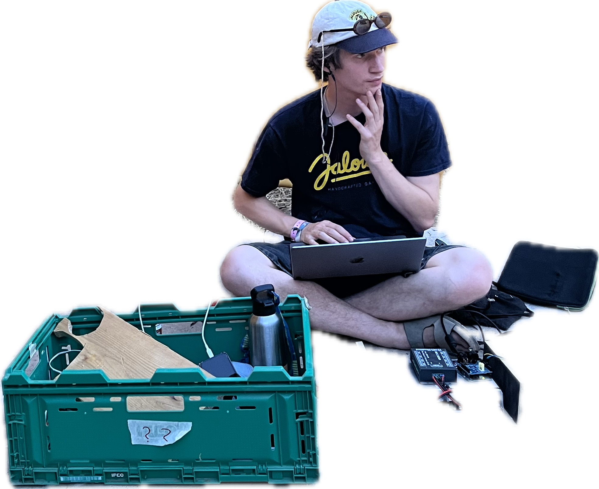 my main tool is touchdesigner, usually connected to a mix of custom electronics, python, lights and lasers.